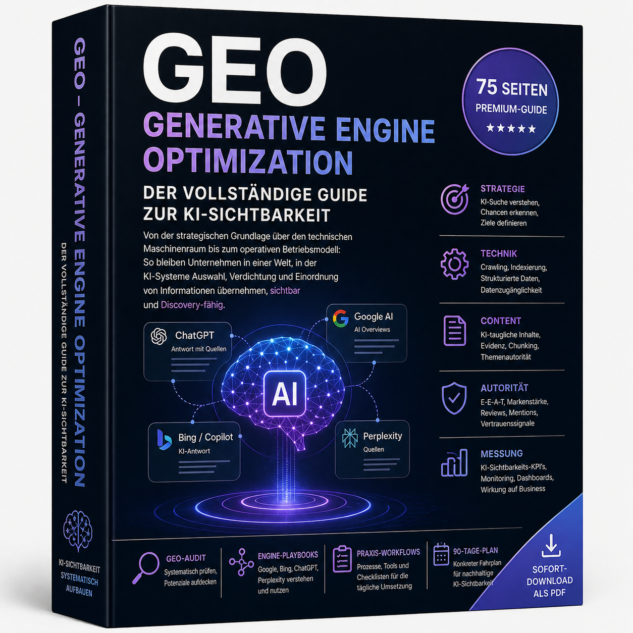 - 75 Seiten umfassendes Praxiswissen zu GEO und KI-Sichtbarkeit